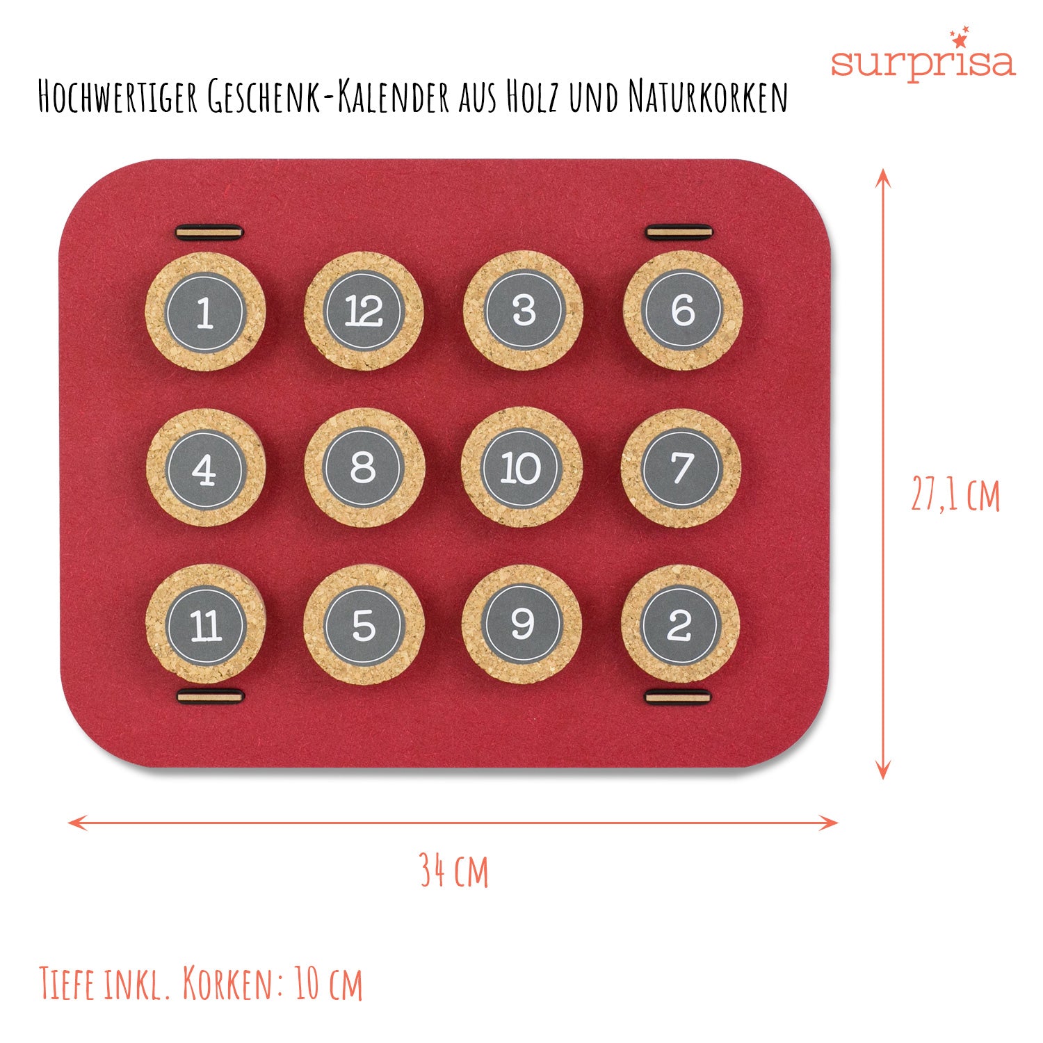 - Geschenkkalender: 34 x 27,1 x 10 cm (inkl. Korken)