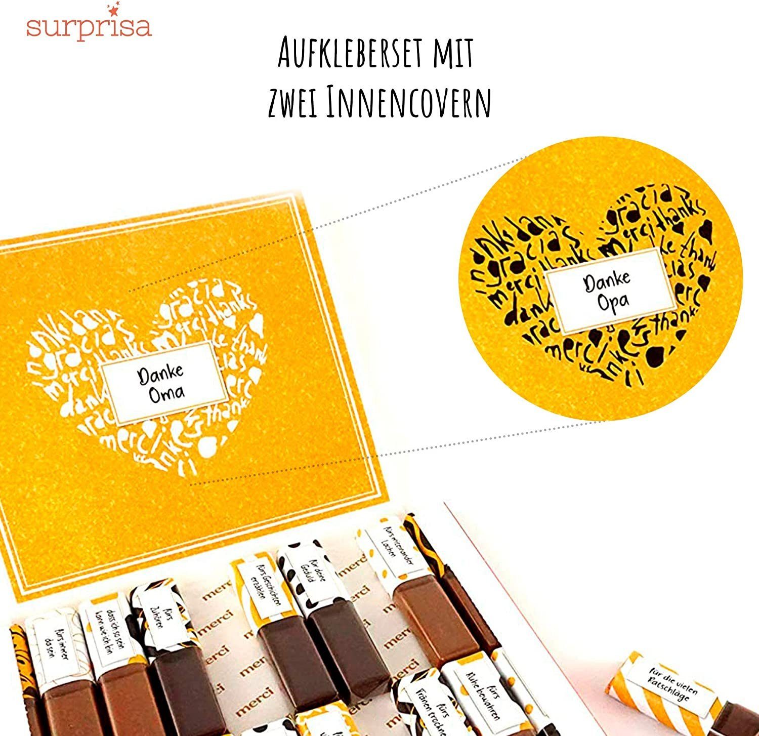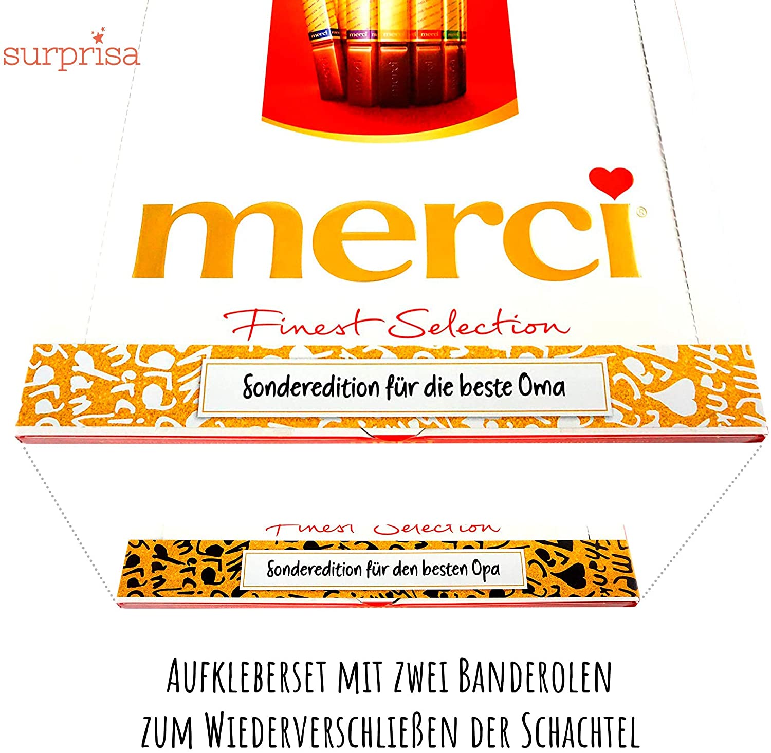 Aufkleberset für Merci-Schokolade: Süße Grüße für Deine Oma oder Deinen Opa!