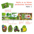 Außerdem gibt es die Möglichkeit, die Schiebekarten noch an einigen Stellen selbst zu beschriften und Grußnachrichten zu ergänzen und damit Dein Geschenk noch persönlicher zu machen.
