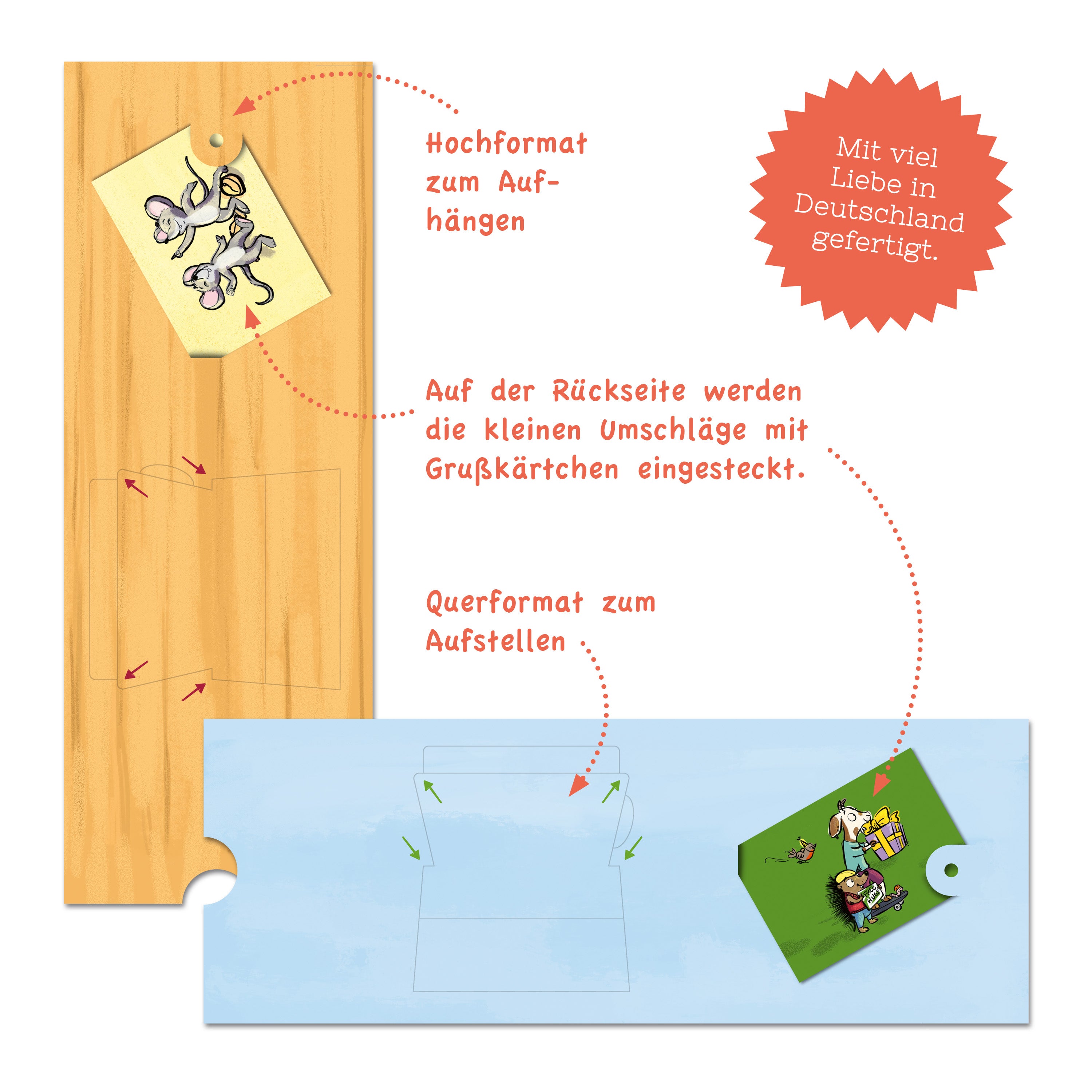 Unsere neuen Geschenkkarten überraschen nicht nur mit einem überraschenden „Slider-Effekt“ beim Herausziehen, sondern in den liebevoll entwickelten Motiven verbirgt sich das Geschenk hinter einer „geheimen Tür“, ähnlich zu einem Adventskalender. So ist ein besonderes Geschenkerlebnis garantiert!
