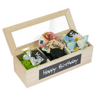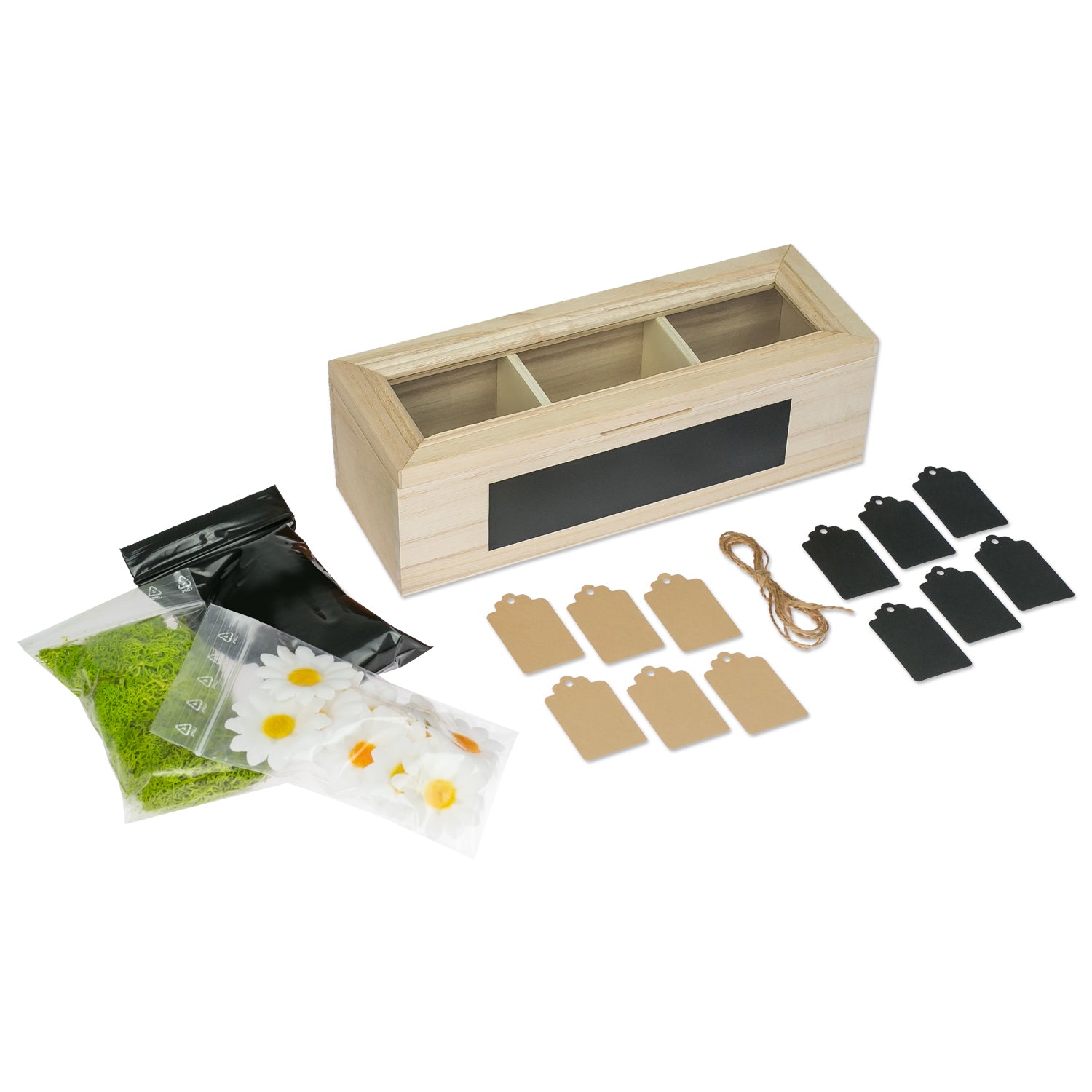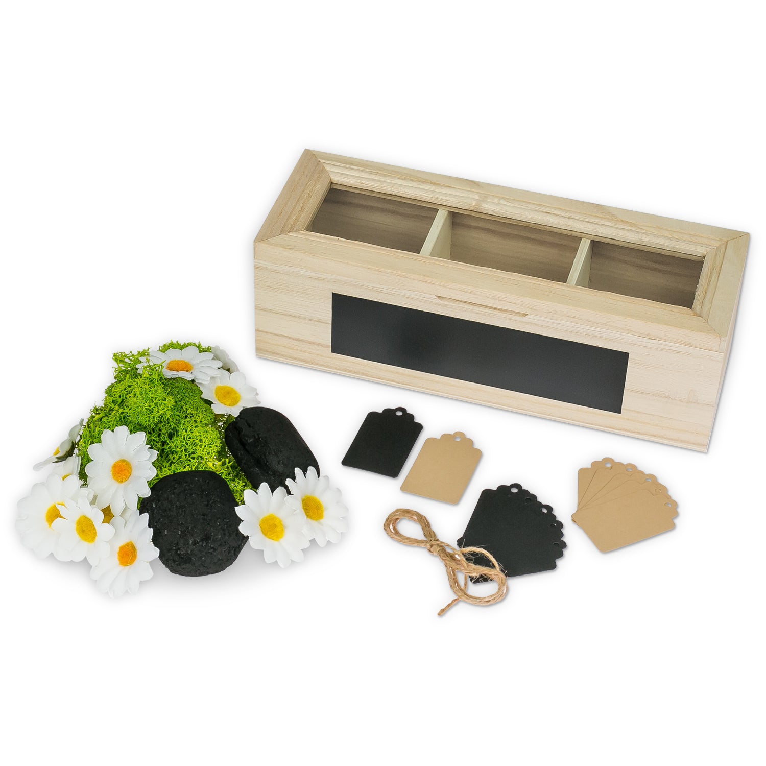 - 1 Holzbox mit 3 Fächern, Glasdeckel und Tafelfolien Sticker