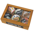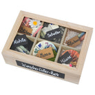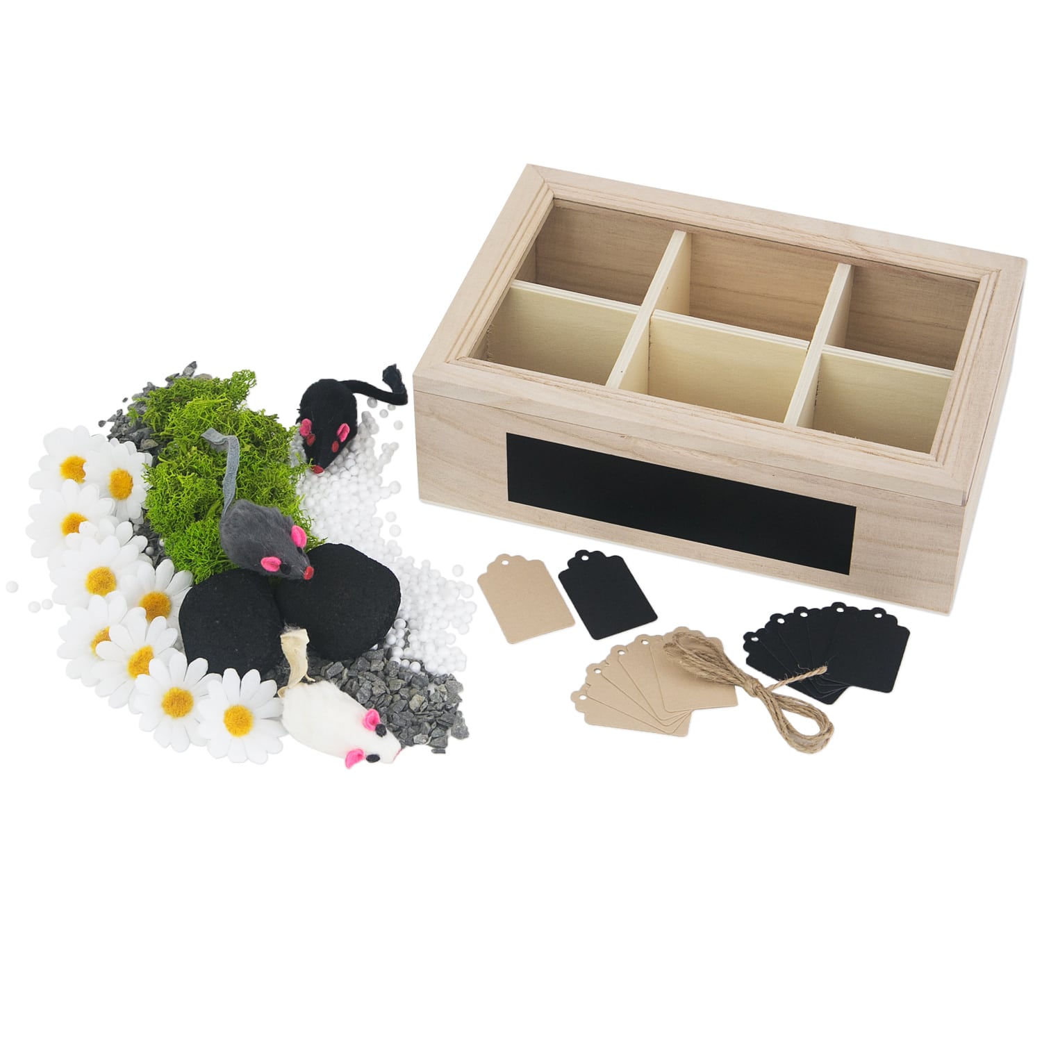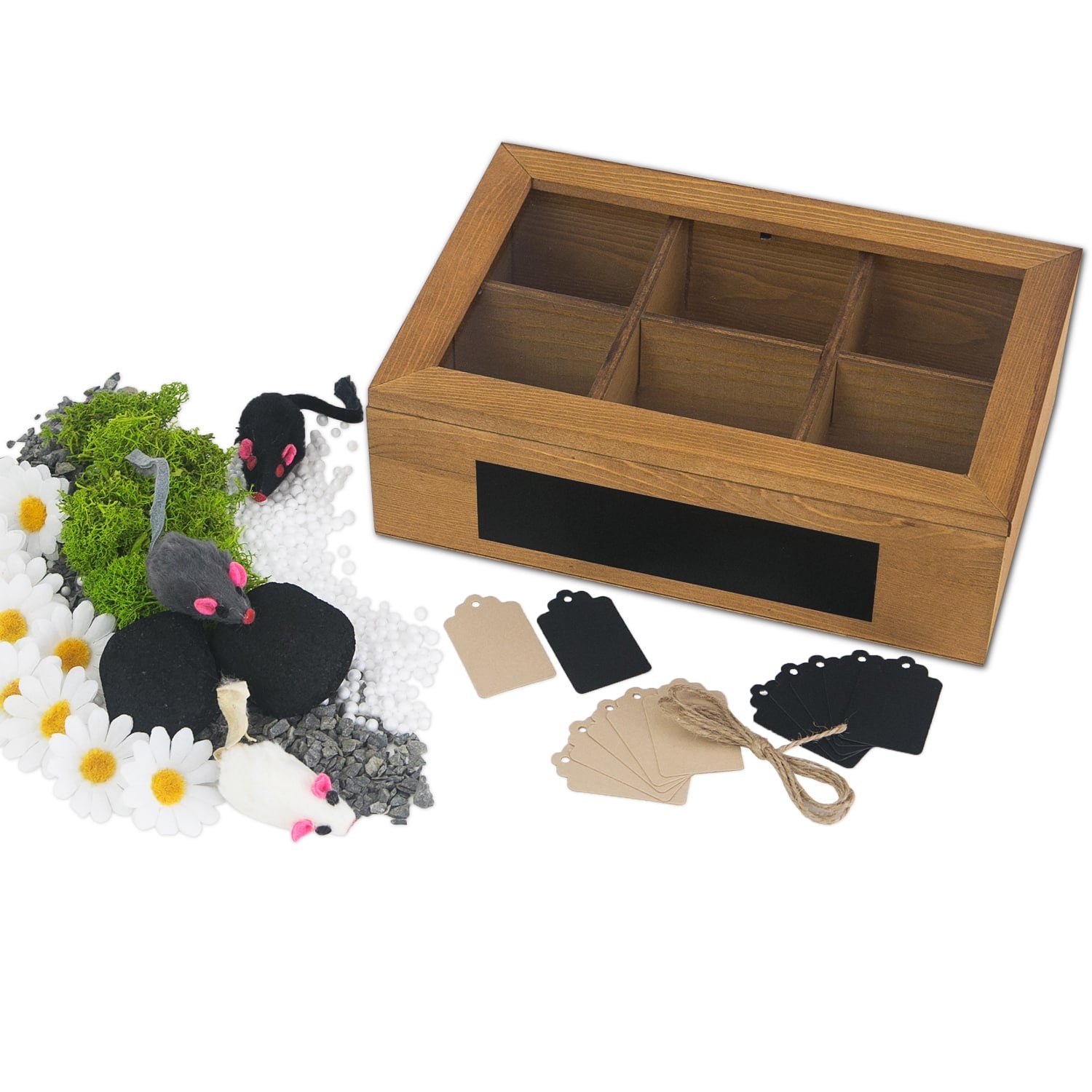 - 1 Holzbox mit 6 Fächern, Glasdeckel und Tafelfolien Sticker