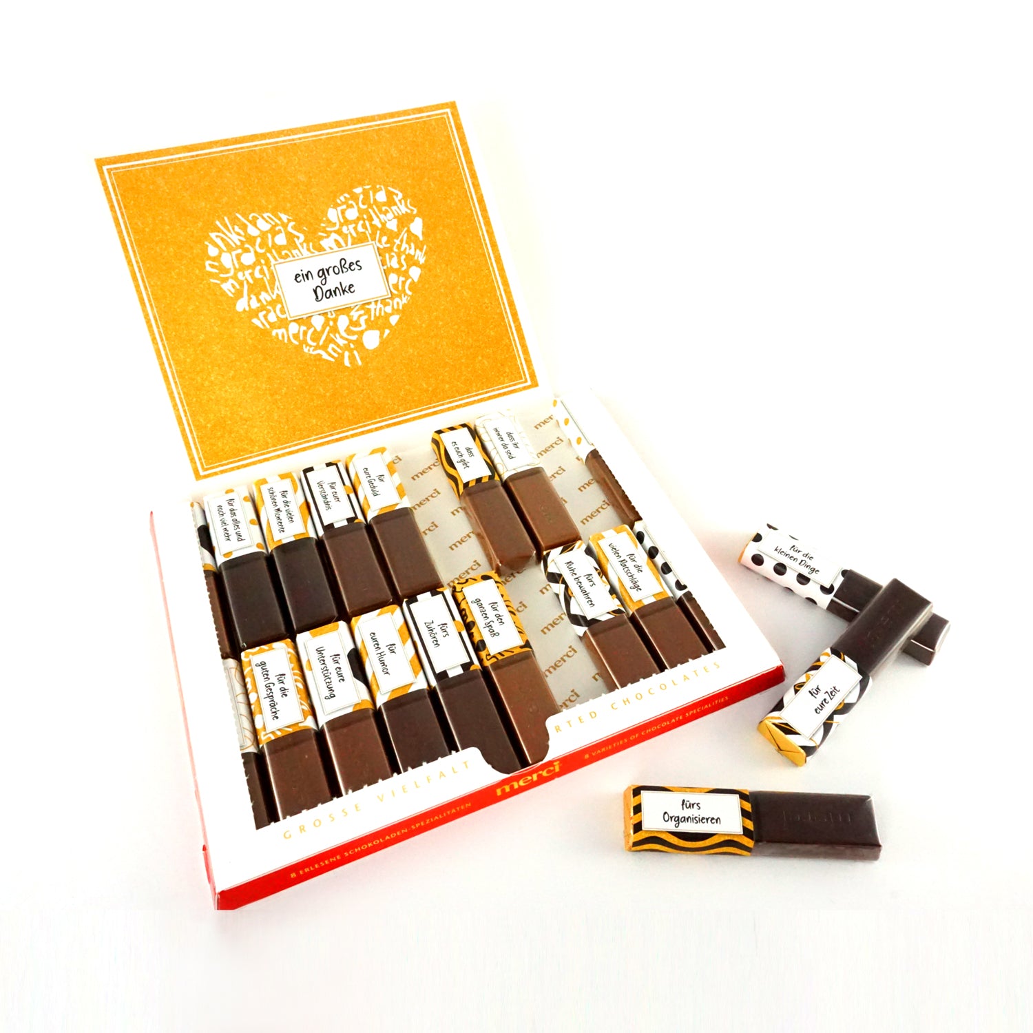 Bitte beachte, dass die Merci-Schokolade nicht im Lieferumfang enthalten ist!