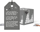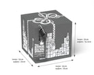 - 1x kleine Geschenkrätselbox in grau (würfelförmiger Geschenkkarton), 13 x 13 x 12,5 cm (außen), 12 x 12 x 12 cm (innen)