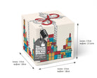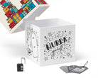 - 1x große Geschenkrätselbox in bunt (würfelförmiger Geschenkkarton), 18 x 18 x 17,5 cm (außen), 17 x 17 x 17 cm (innen)