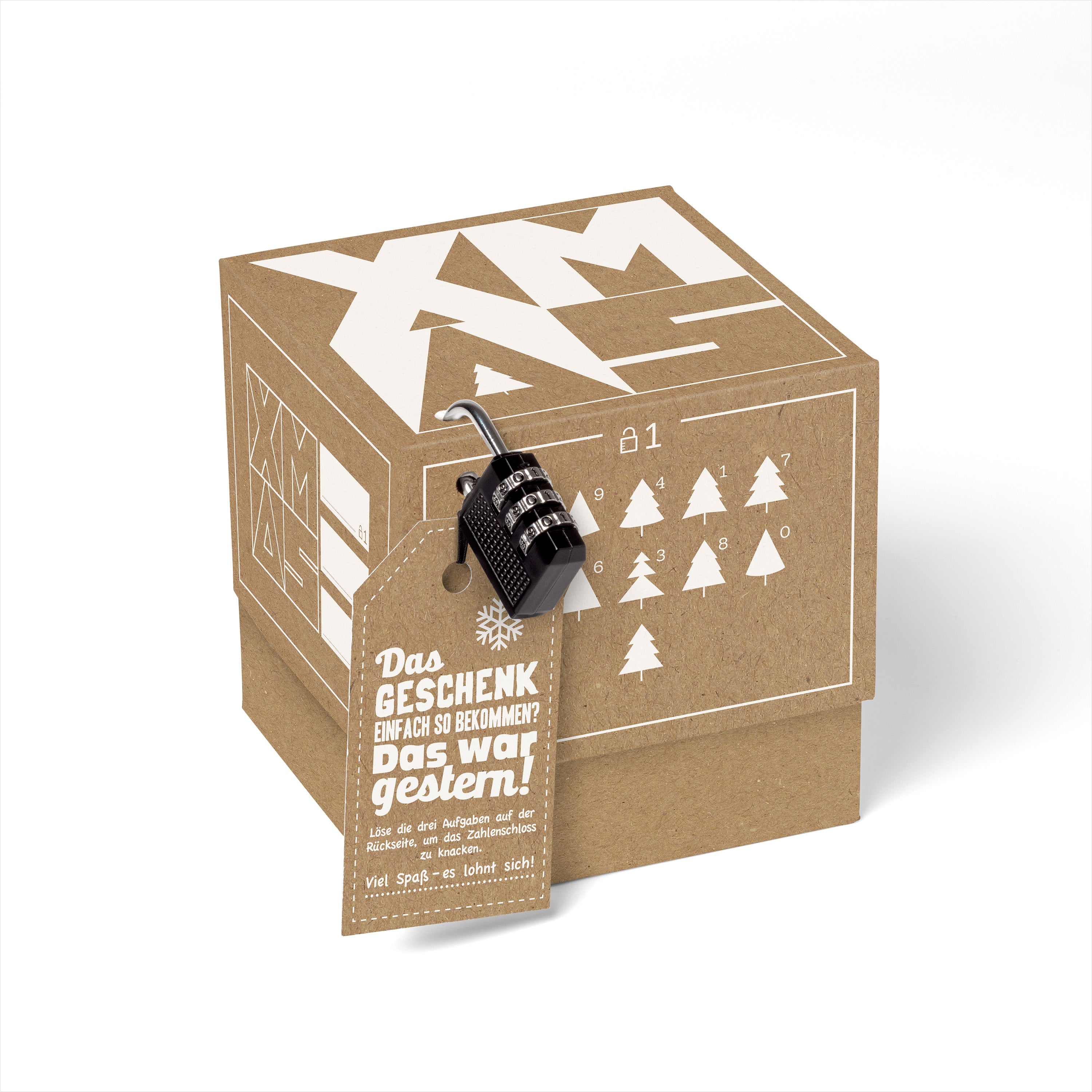 ...und das wortwörtlich: Im Inneren der Knobelbox kannst du dein Weihnachtsgeschenk – ob Geld, Gutscheine oder kleine Aufmerksamkeiten – sicher verschließen. Doch bevor die/der Beschenkte das Geschenk erhält, müssen erst drei weihnachtliche Rätsel gelöst werden, die zu den Ziffern des Zahlenschlosses führen. Mit dem Blanko-Geschenkanhänger kannst du eigene Rätsel erstellen und so dein Weihnachtsgeschenk ganz persönlich gestalten. Diese hochwertige Geschenkbox bietet Platz für eigene weihnachtliche Texte oder Bilder und macht das Schenken zu einem kreativen Erlebnis unter dem Weihnachtsbaum.