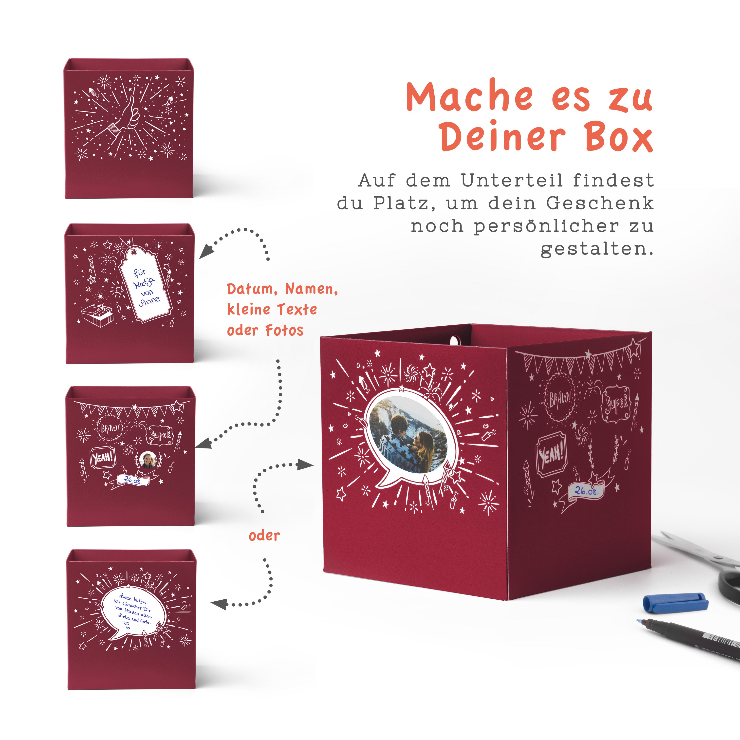 Ob klassisch, verspielt oder witzig – unsere Weihnachts-Geschenkboxen sind schnell gemacht und bleiben lange im Gedächtnis.