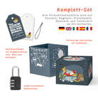 ...und das wort-wörtlich: im Inneren der Knobelbox kannst Du nämlich Dein Geschenk einschließen, das Du überreichen möchtest. Ob Geldschein, Gutscheine, Erlebnisgeschenke oder auch Pralinen oder Parfum für die Freundin, Tickets, Gürtel, Schmuck oder kleine textile oder technische Geschenke für den Freund. Damit die/der Beschenkte es jedoch bekommt, muss erst das Zahlenschloss geknackt werden, wozu verschiedene Dinge auf der Box gesucht, gefunden und erknobelt werden müssen. Drei Aufgaben führen jeweils zu einer Ziffer des Schlosses. Oder Du nutzt den Blanko-Geschenkanhänger, um selbst Aufgaben zu formulieren, und gestaltest damit ganz einfach Dein personalisiertes Geschenk. Außerdem gibt es auf dem Unterteil Platz für Deinen individuellen Text und Bilder. So hast Du alles in Einem: eine hochwertige Geschenkverpackung mit Überraschungseffekt, die jedes Geschenk persönlich und kreativ macht. Für alle, die ein Exit Game oder Escape Boxen lieben!