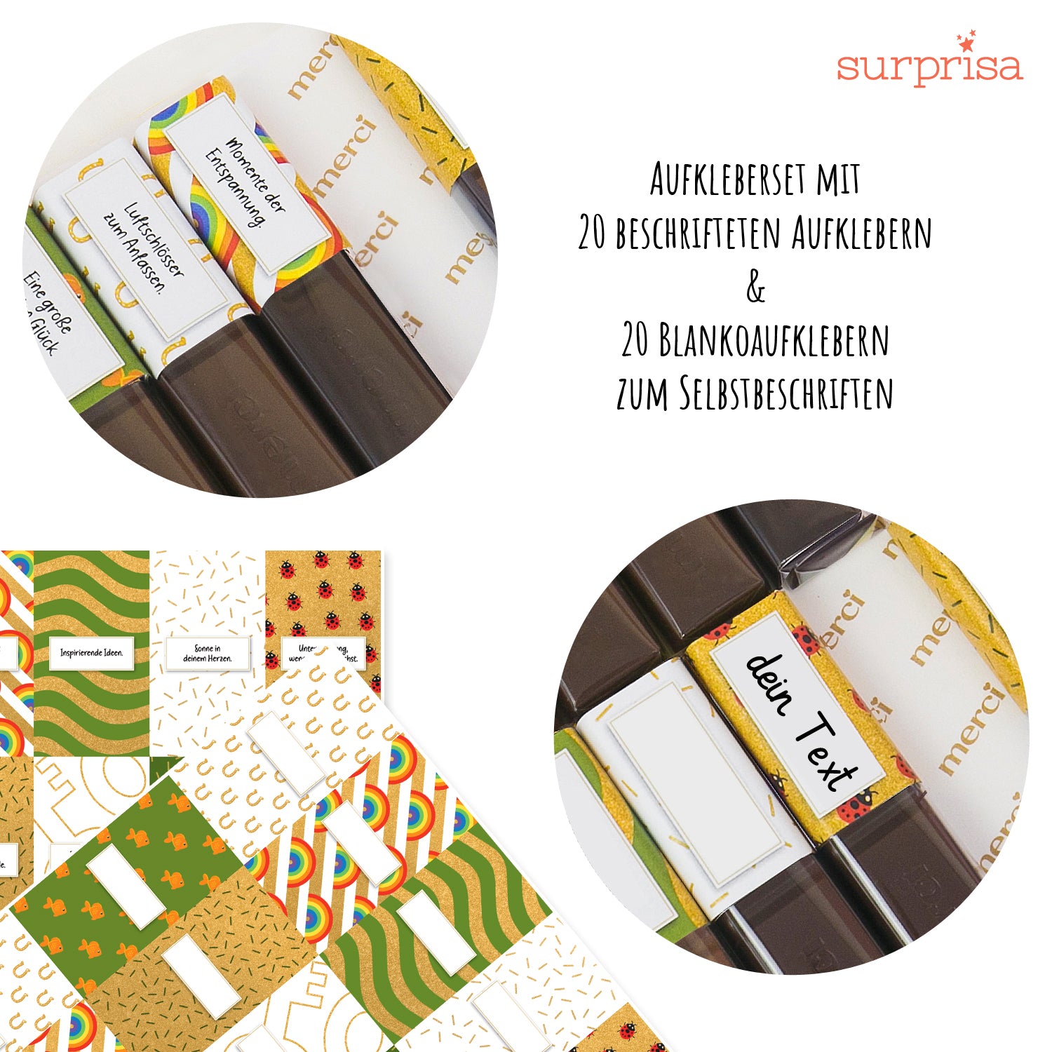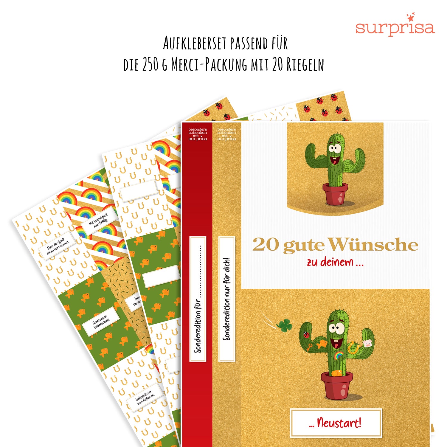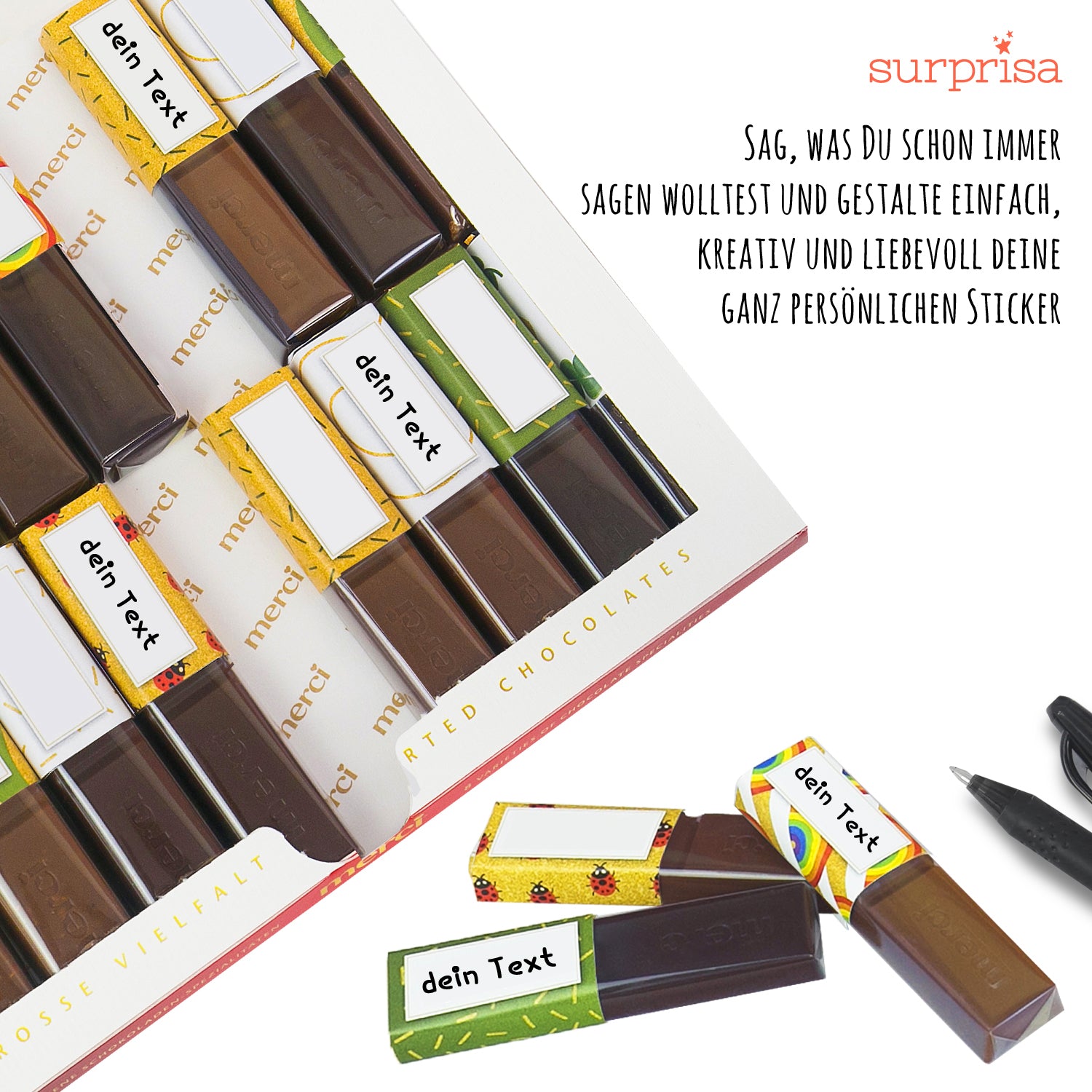 Aufkleberset für Merci-Schokolade: Süße Grüße für einen Neustart!