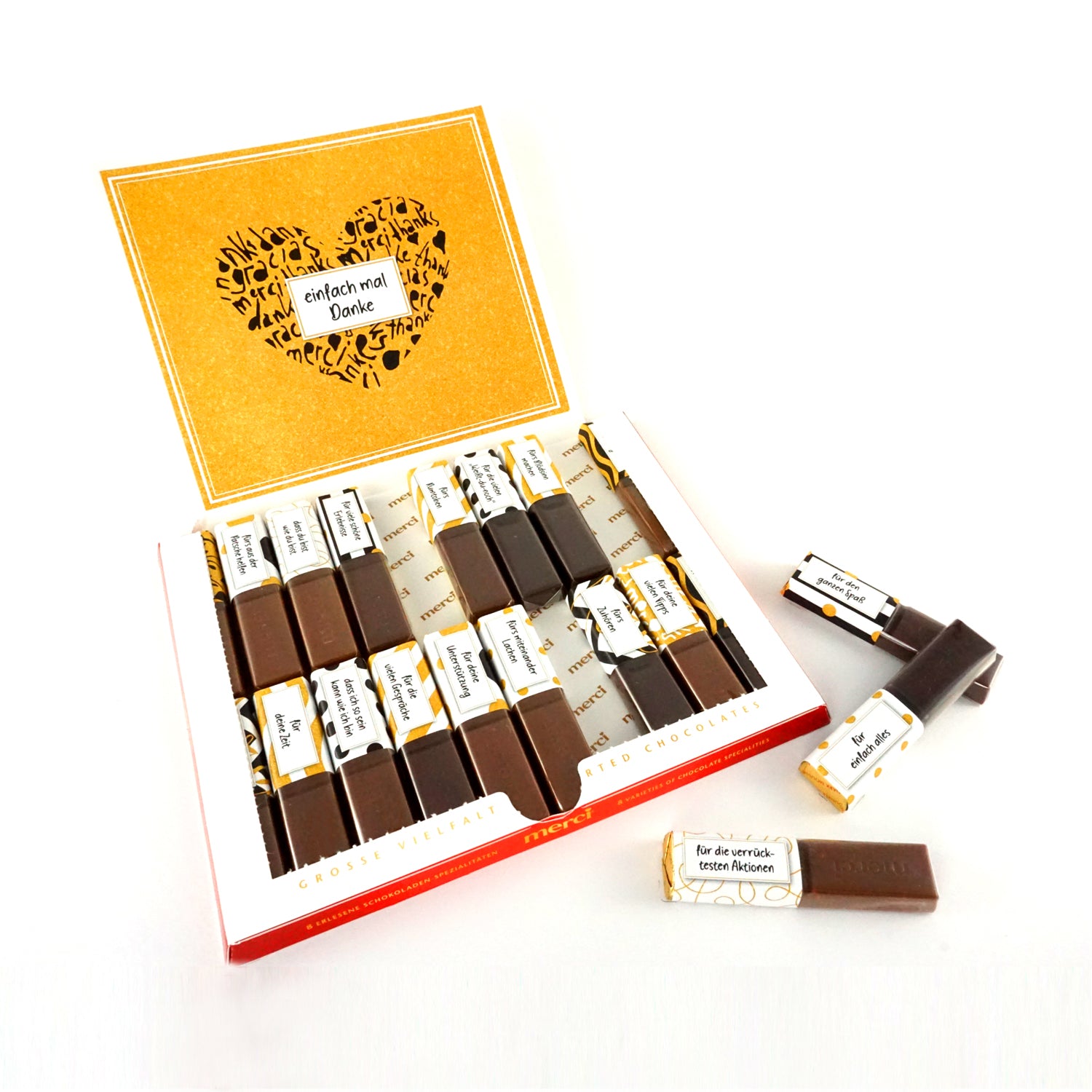 Bitte beachte, dass die Merci-Schokolade nicht im Lieferumfang enthalten ist!
